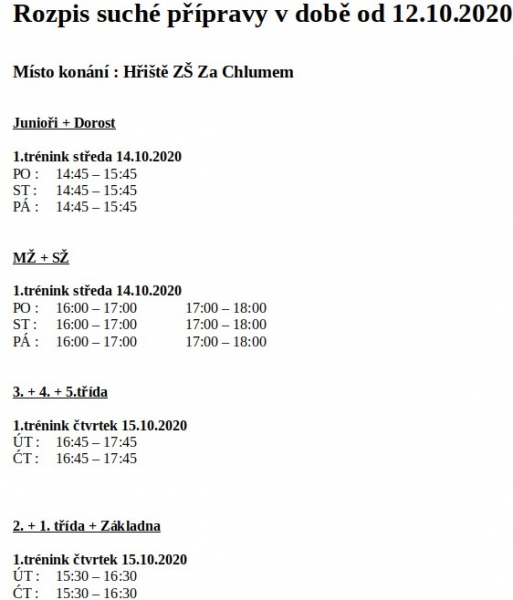 Plán tréninků od 12.10.2020